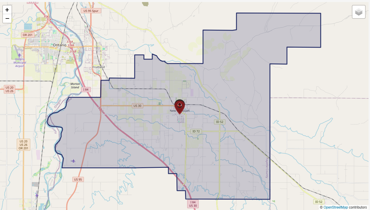 New Plymouth Fire Protection District isn’t limited just to the city itself, we are a Fire Protection District covering roughly 186 square miles of both the city and surrounding rural Payette county communities, providing fire, rescue, EMS, and hazard response across that area. Including major travel routes like I-84, Hwy 95, Hwy 30 west, Hwy 30 south, Hwy 72, Hwy 52, Sand hollow Rd and BLM land.